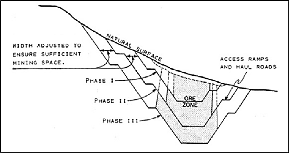 • The final open-pit mine design is an optimization problem that integrates geological, economic, geotechnical, operational, and environmental variables to define the ultimate pit limits, bench and inter-ramp geometry, and overall slope angles. These factors are used to balance economic efficiency with the geotechnical requirements for stable walls and long-term operational viability.