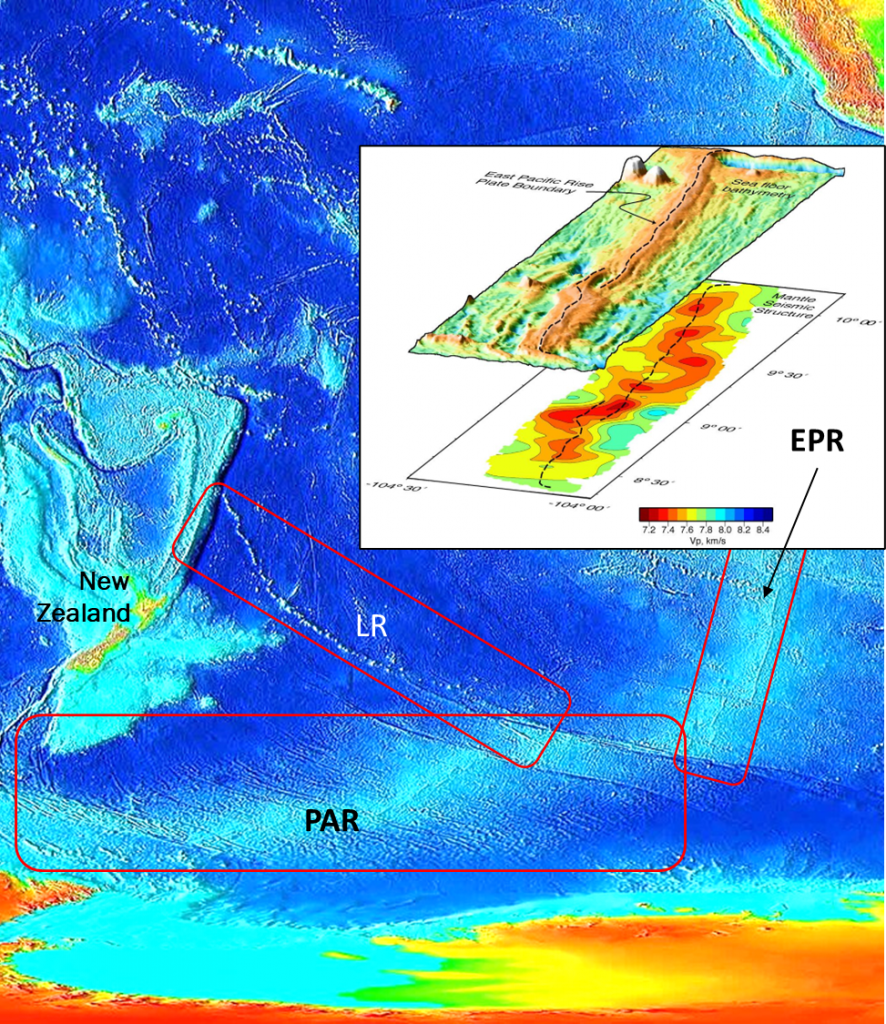 - An interesting intersection feature is the Louisville Ridge (LR) which stretches ~4300km northwest from the PAR. This is a long line of ~70# volcanic seamounts believed to have formed by the Pacific Plate moving across a magma upwelling called the Louisville hotspot.