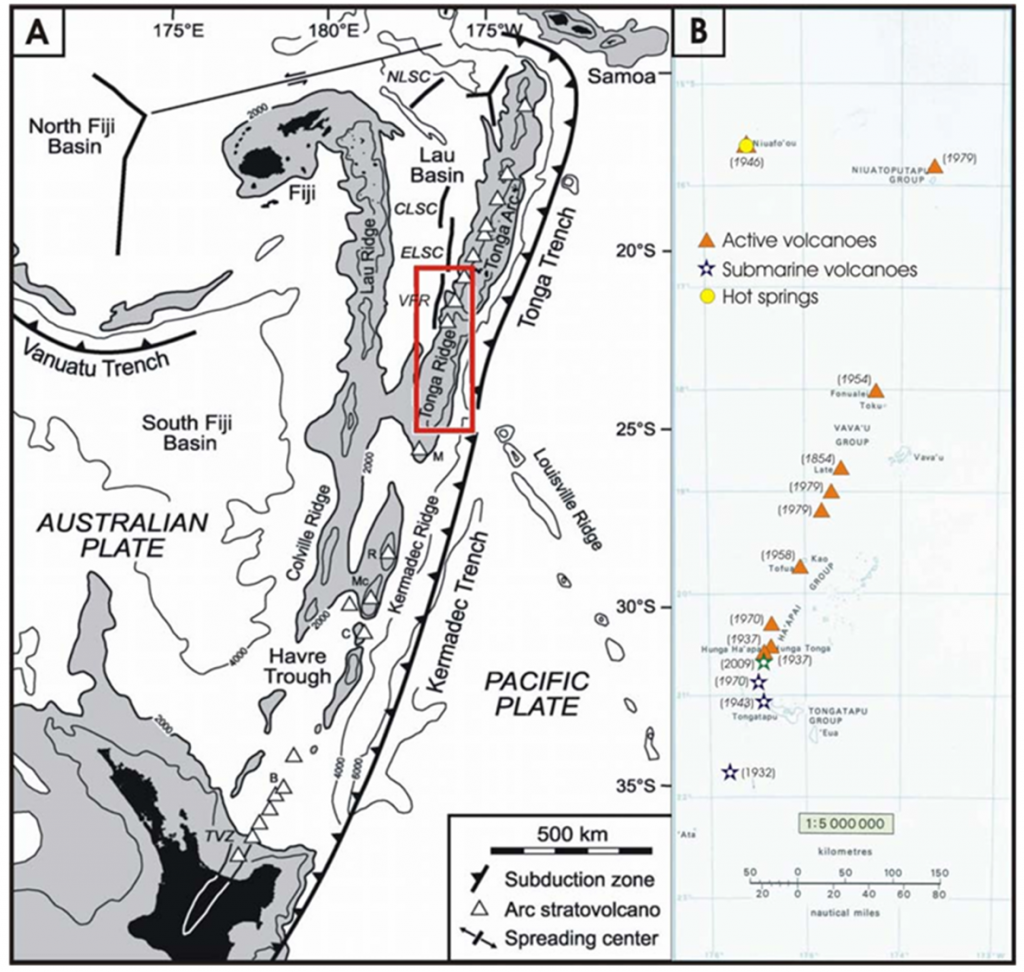 - An interesting feature is the presence of significant submarine hydrothermal systems along the South Tonga Ridge and the nearby Valu Fa Ridge. Eleven ocean hydrothermal systems have been found on these ridges emanating from seven volcanoes, temperatures of 245-265°C were recorded at depths of 385-540 m. Future potential resources?